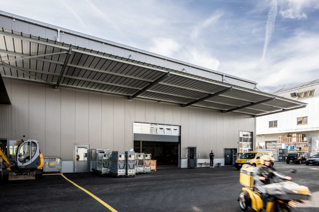 – 2-geschossige Gewerbehalle, mit Warenförderanlage und Ausbau eines Paketverteilzentrums der Schweizerischen Post.