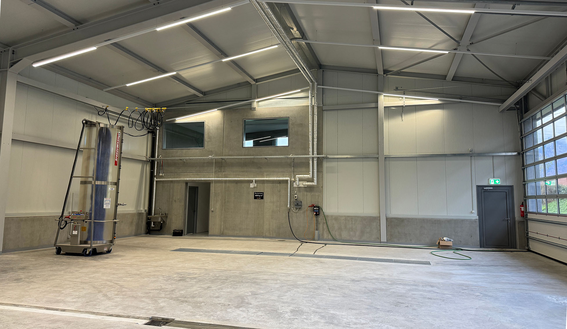 Neubau einer Einstellhalle für sechs Postautos als Elektrofahrzeuge mit aufwendiger Ladeinfrastruktur, inkl. Waschplatz, Lager und Personalraum. Der Neubau wird eine Zweigniederlassung.
