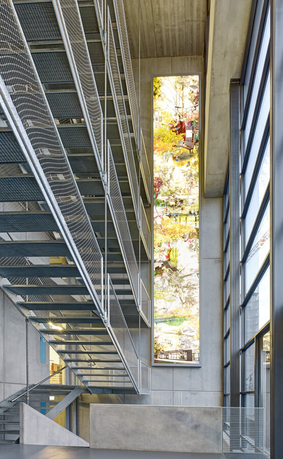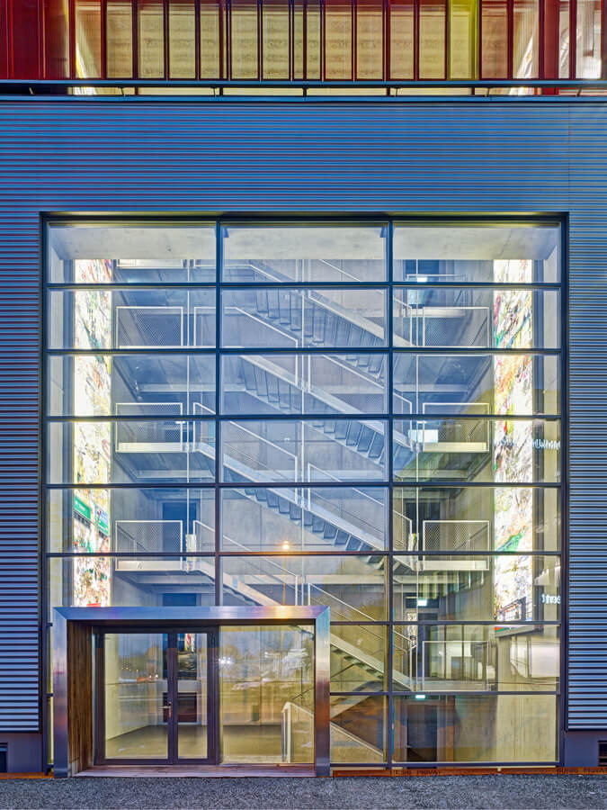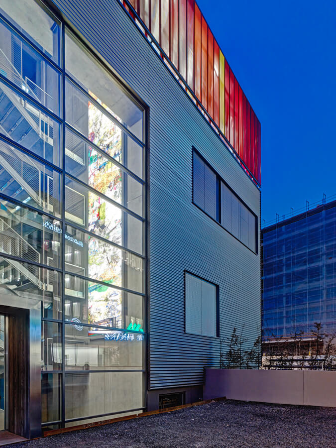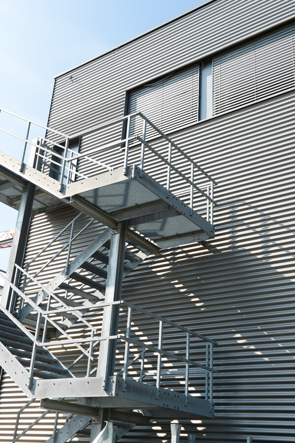- Sonnenstandgelenkte Vertikalkassetten mit Streckmetall im 2. OG