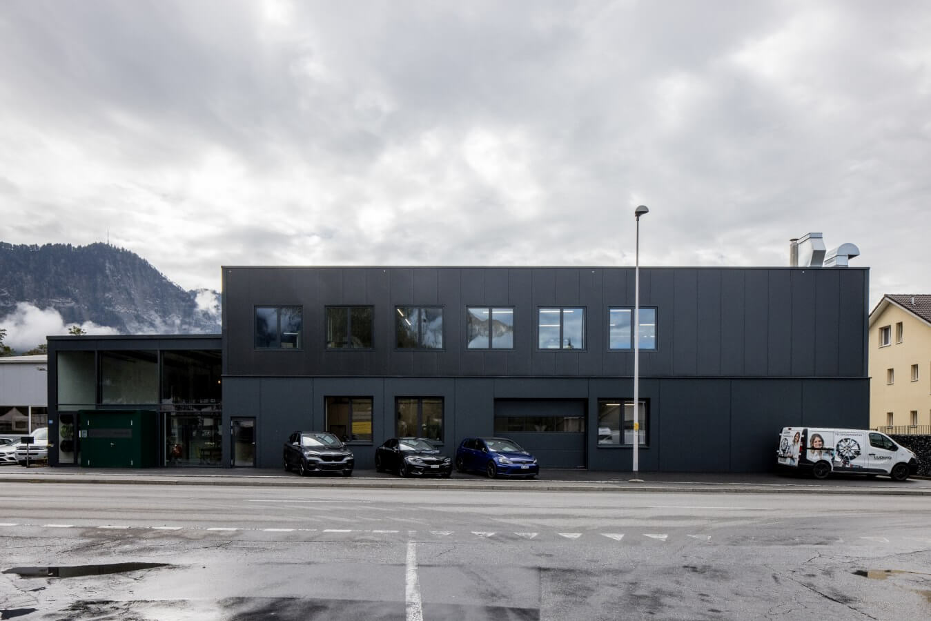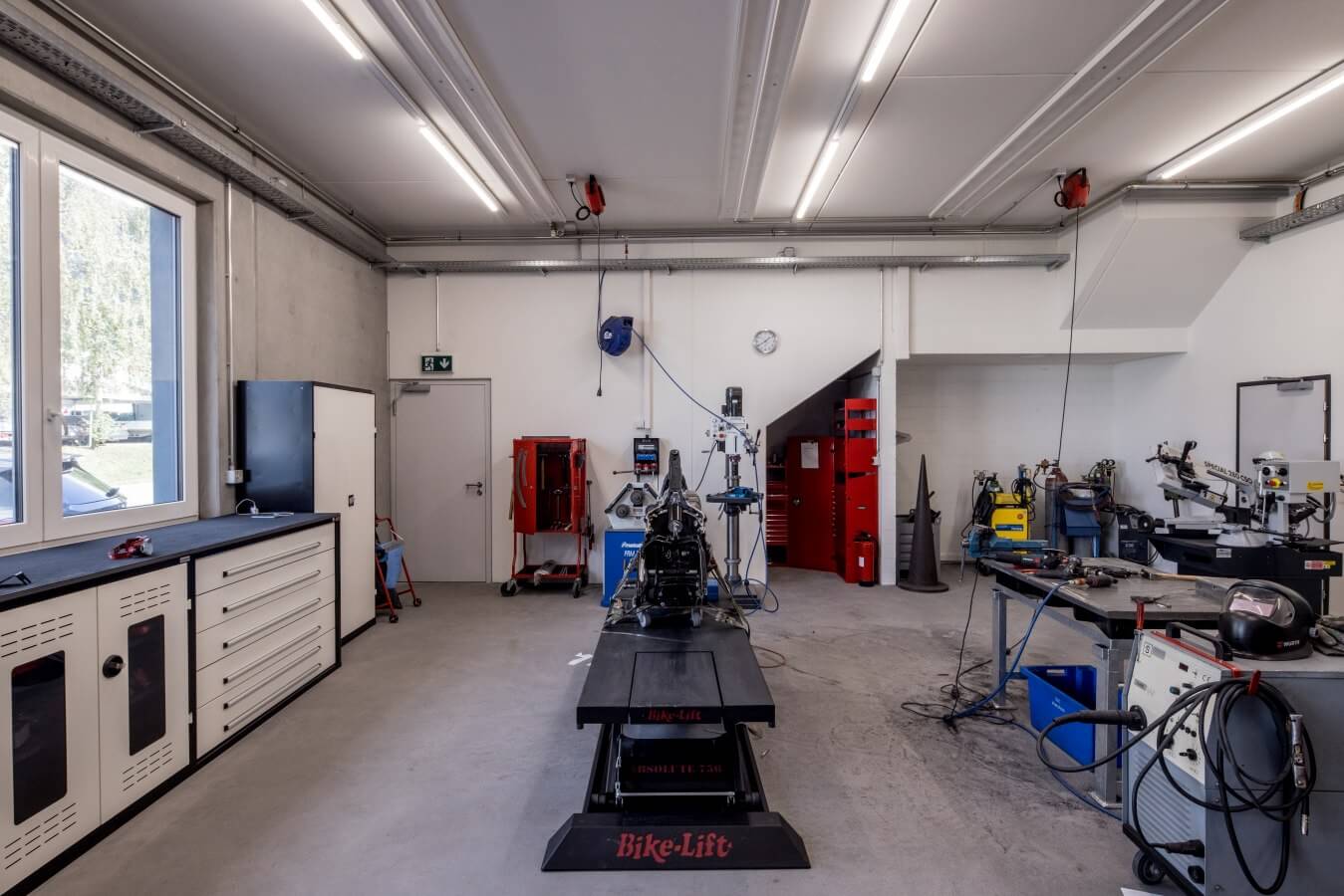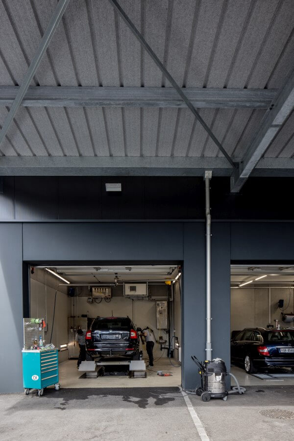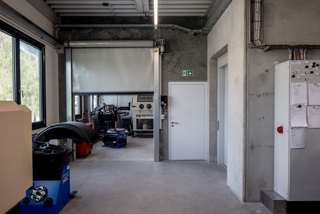 2-geschossiger Erweiterungsbau mit neuem Warenlift, Waschraum, Ablieferungsraum, Motorrad-Spenglerei und moderner Felgenwerkstatt im Obergeschoss.