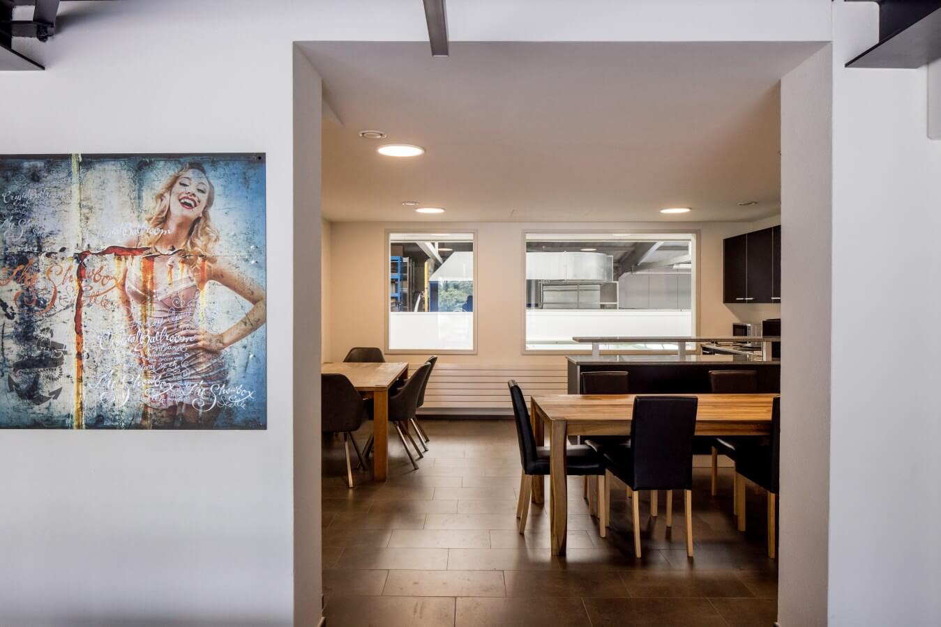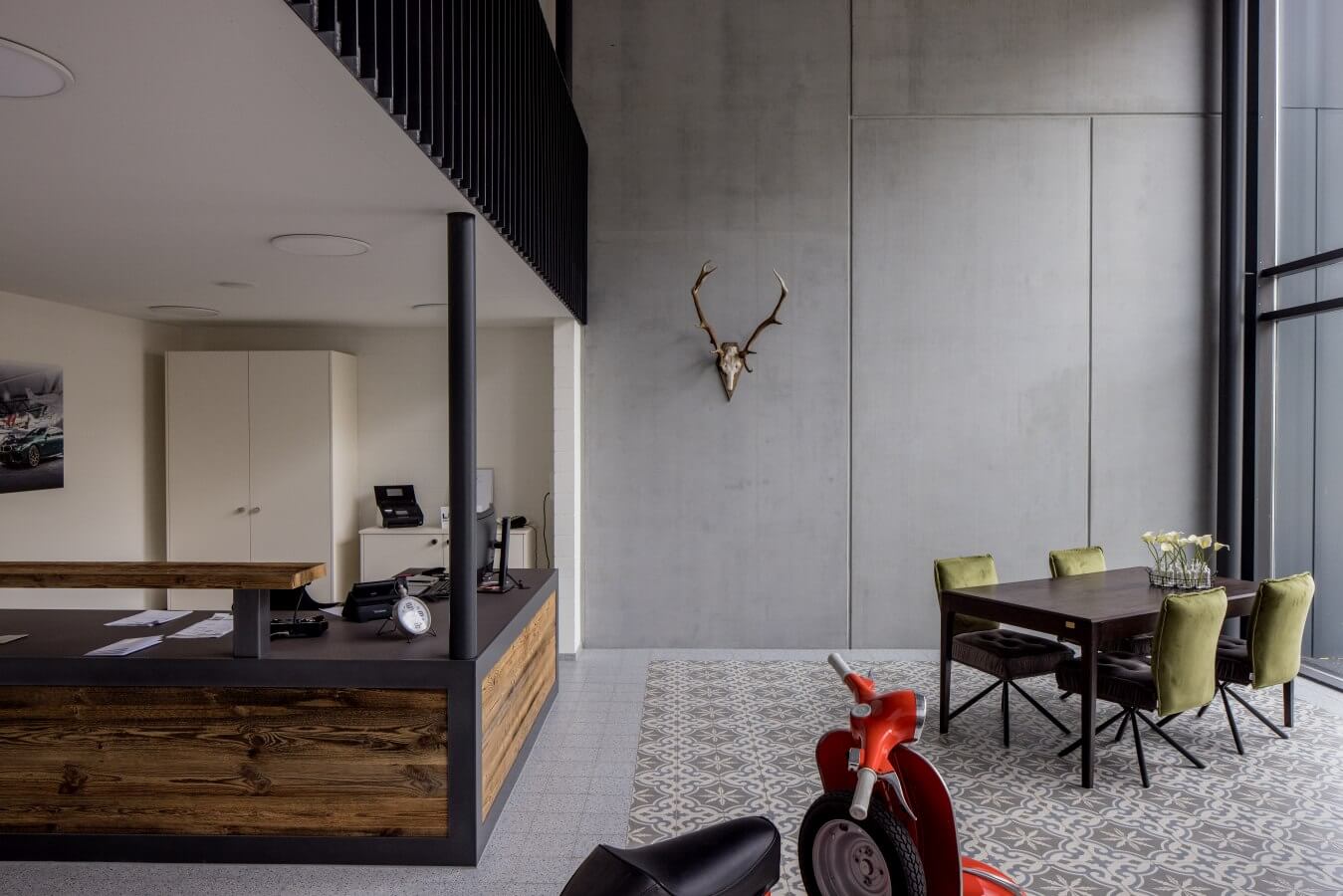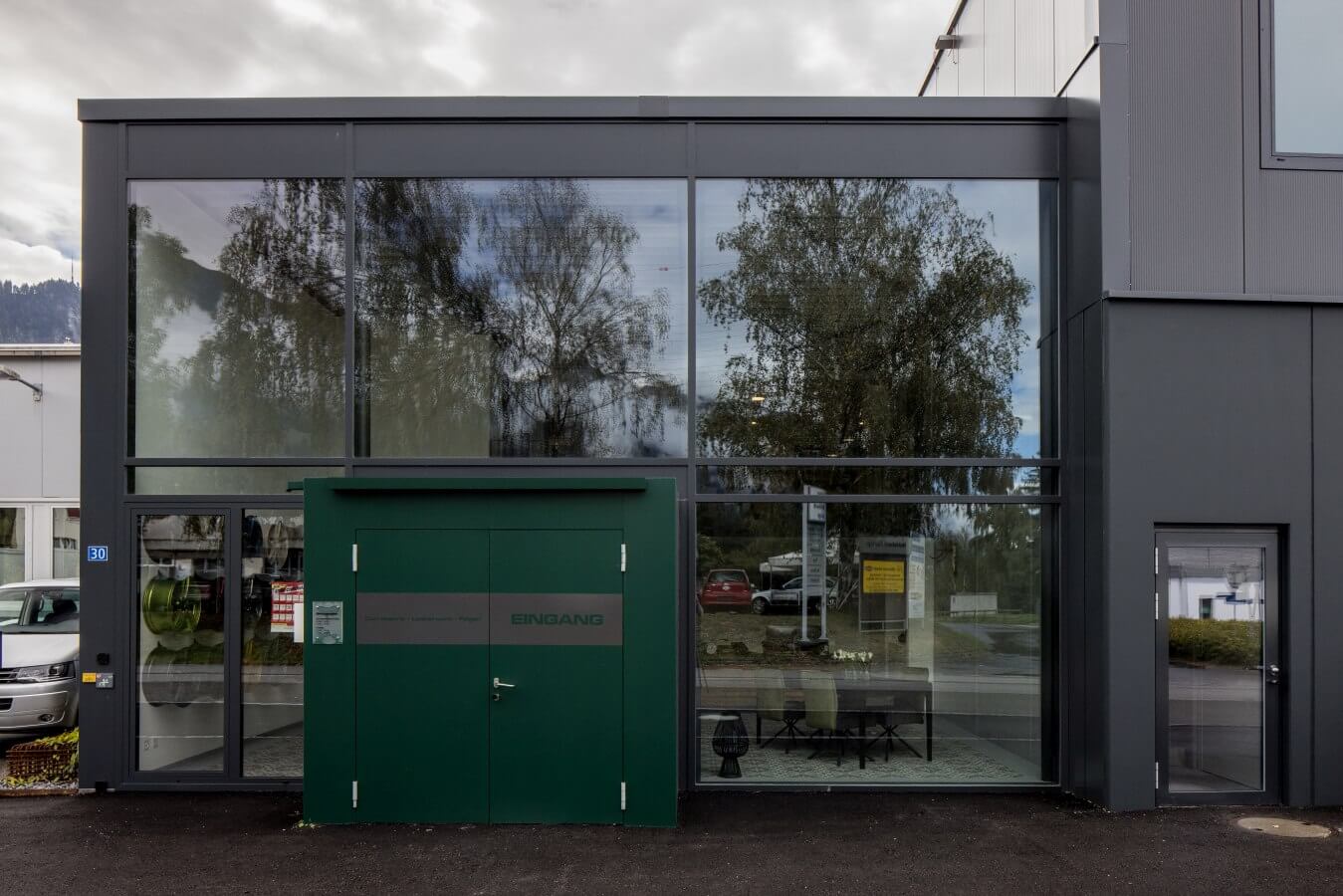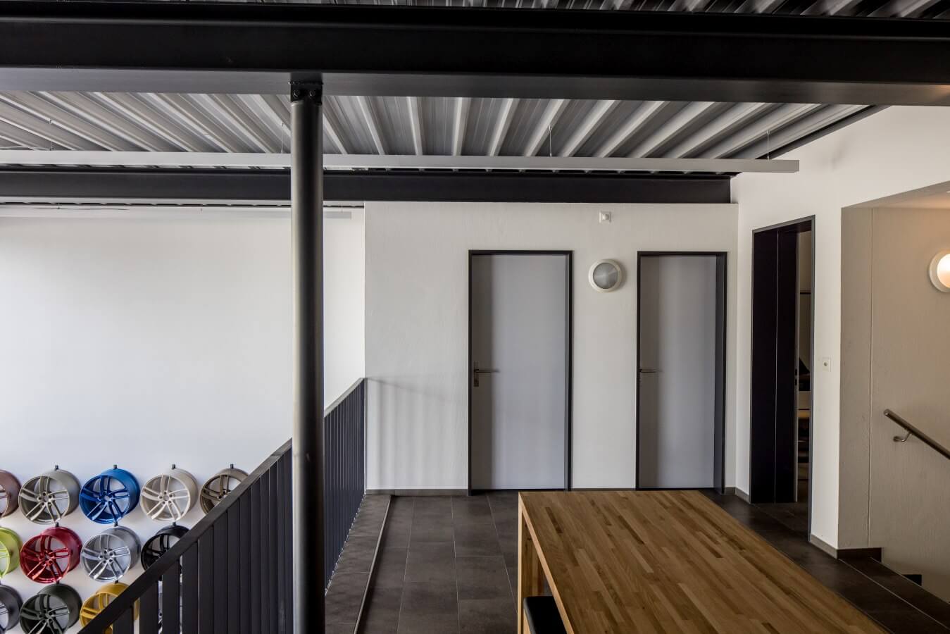 2-geschossiger Erweiterungsbau mit neuem Warenlift, Waschraum, Ablieferungsraum, Motorrad-Spenglerei und moderner Felgenwerkstatt im Obergeschoss.