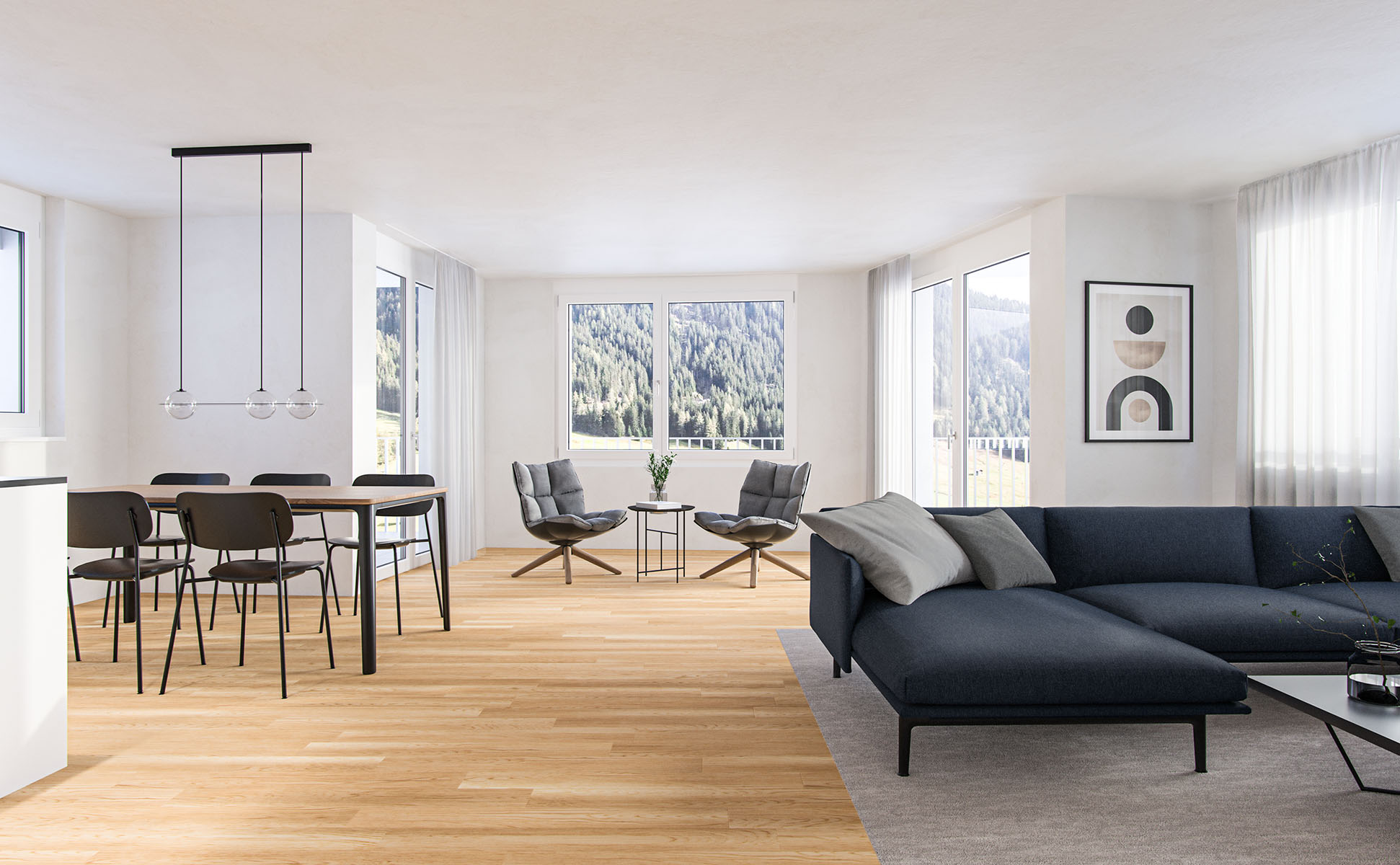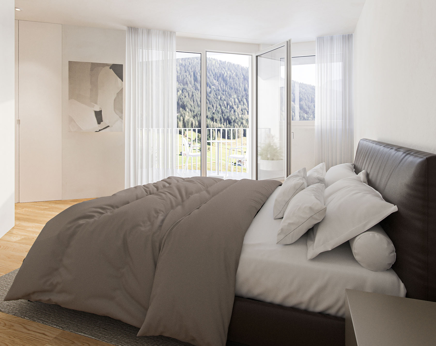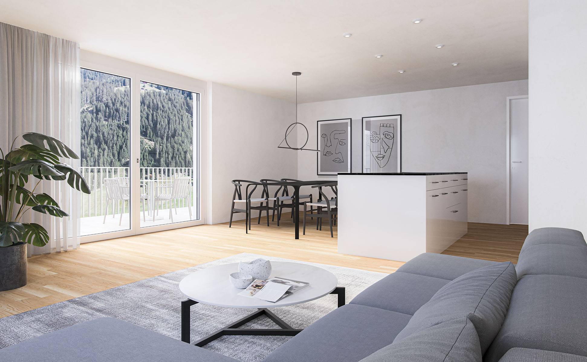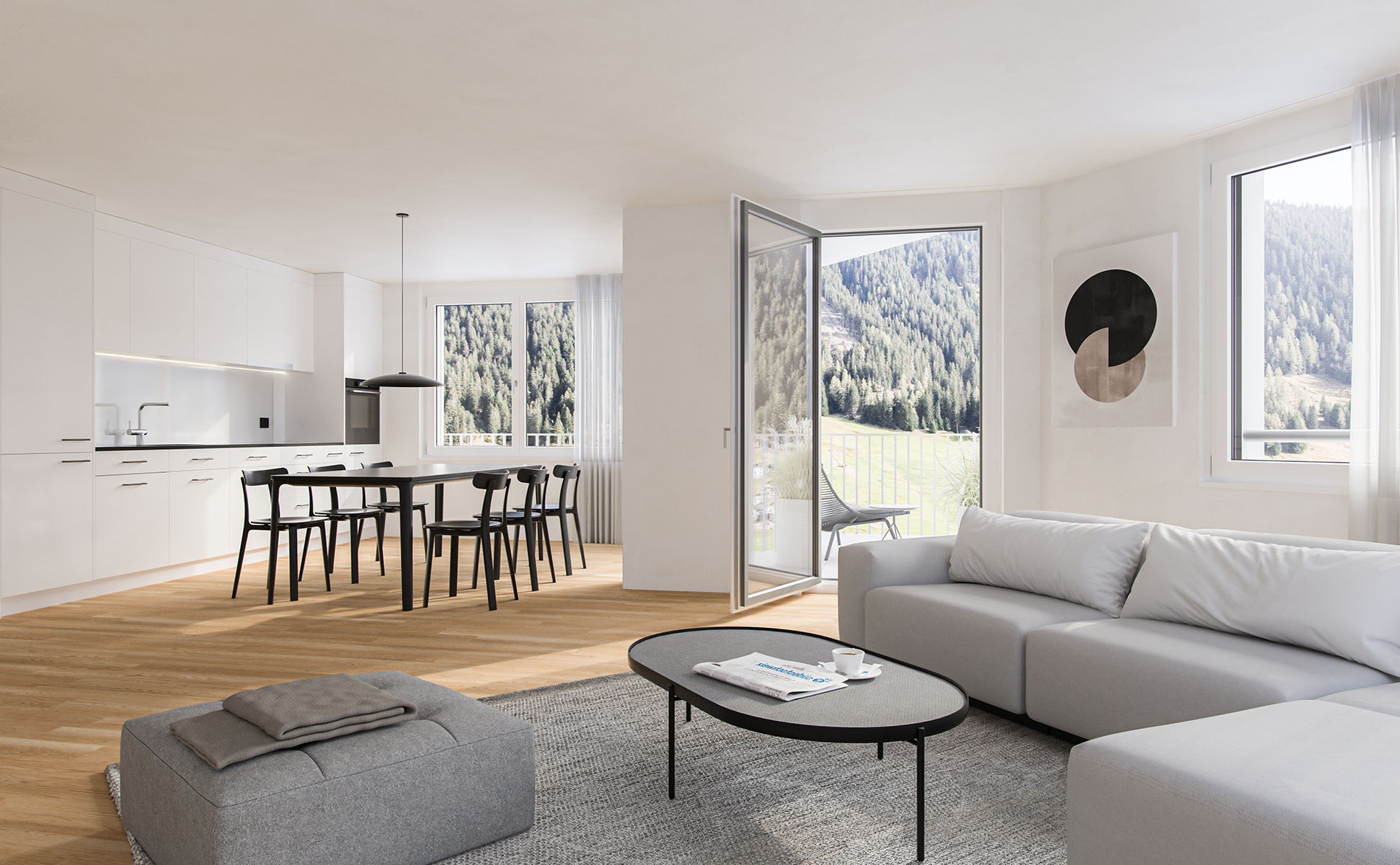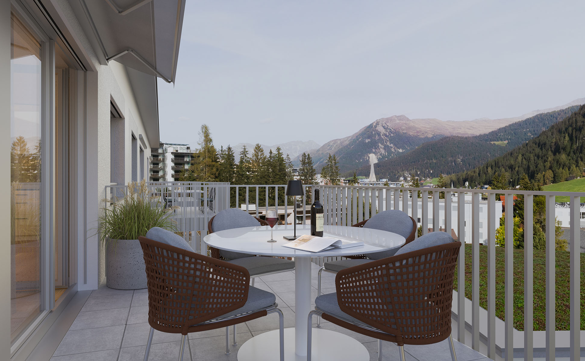 An ruhiger Lage, aber trotzdem zentral in Davos Platz, entstehen an leicht erhöhter Lage zur Davos Promenade am neuen Grüenibachweg die Häuser B, D und E mit 28 Eigentumswohnungen. Davos verfügt über ein gutes öffentliches Verkehrsnetz mit guten Bahnverbindungen zum Unterland und zwei Bahnhofstationen (Davos Dorf und Davos Platz).