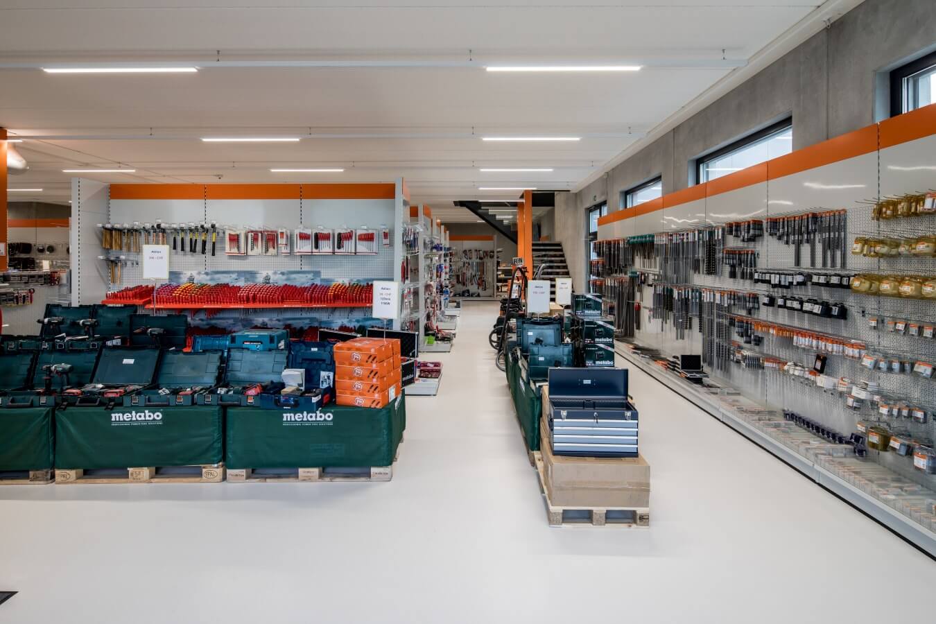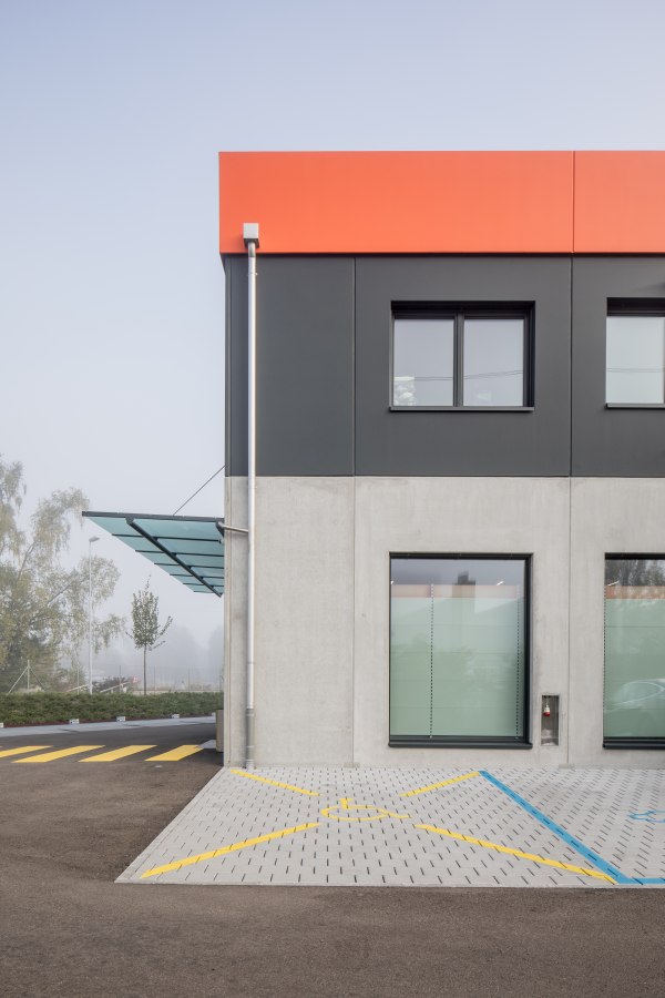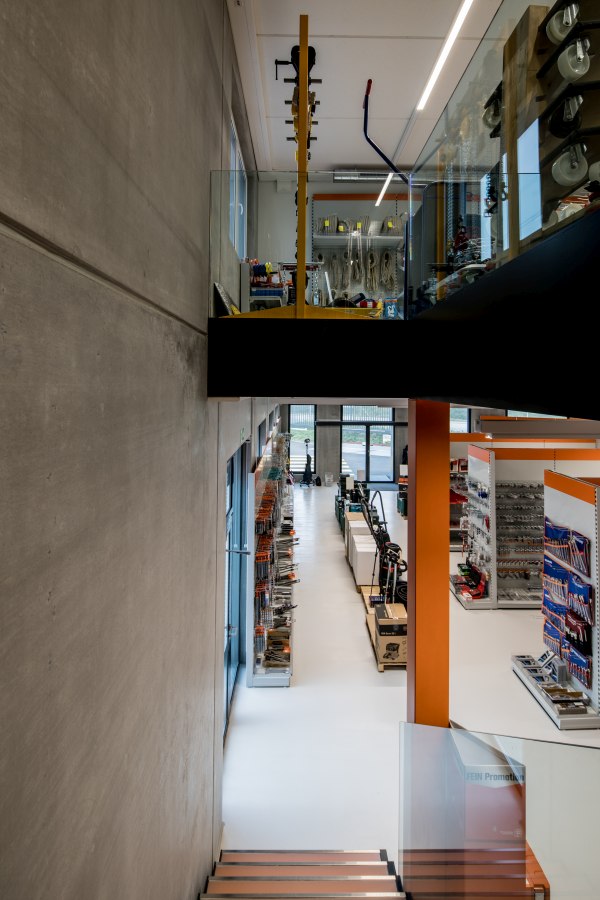 Neubau zweistöckiges Gewerbehaus mit Büro-, Verkaufs- und Lagerräumen.