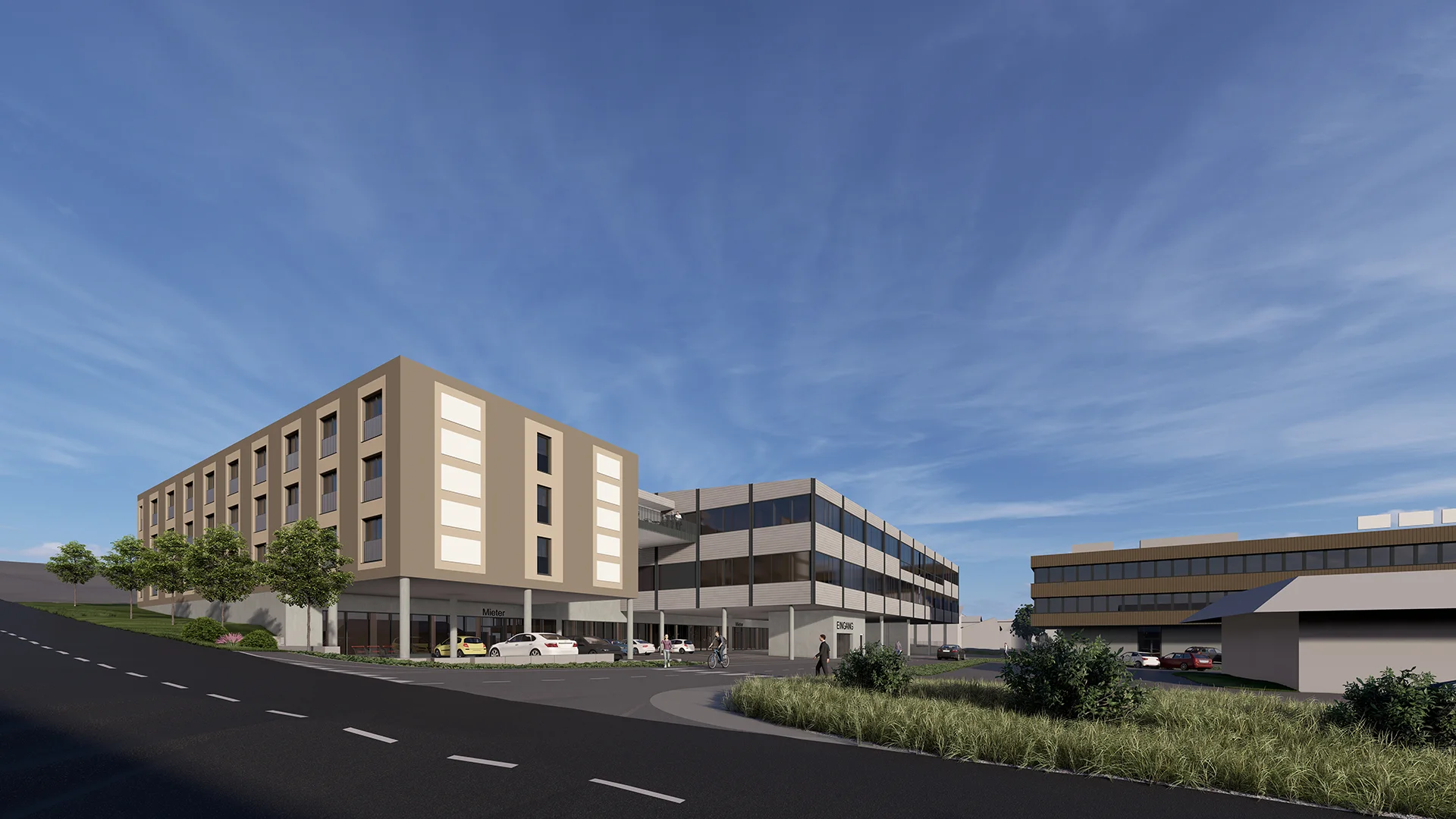 Neubau Gewerbehaus mit Hotelnutzung, Detailhandel, Gewerbe, Büro, Lager, Tiefgarage