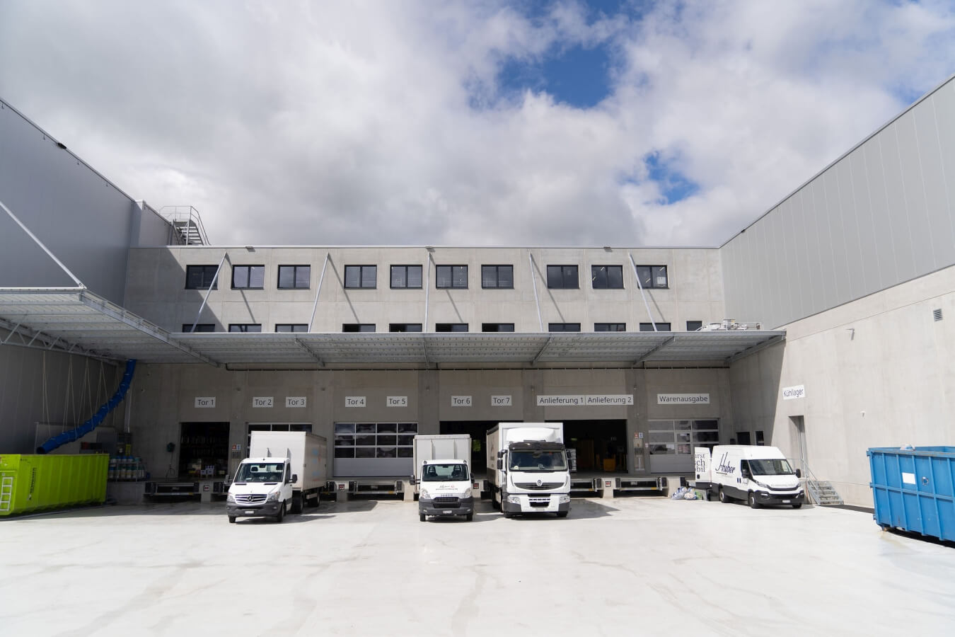 - Huber Getränkehandlung AG: Mehrgeschossige Logistikhalle für Getränkehandel mit über 4‘000m2 Nutzfläche, automatischer Paletten-Förderanlage über 3 Geschosse und 10 LKW-Rampenplätzen.