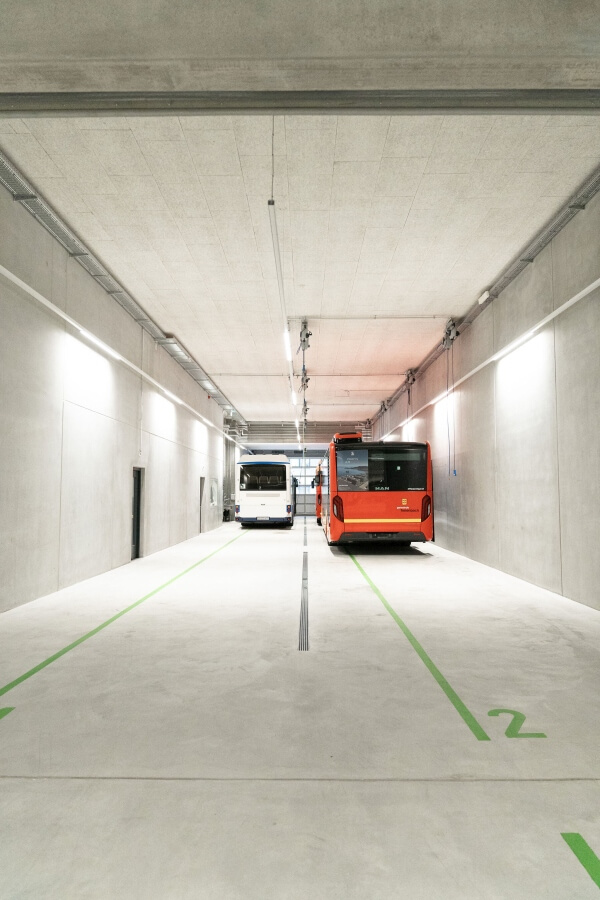 - Sihltal Zürich Uetliberg Bahn SZU AG: Buseinstellhalle für über 60 Grossfahrzeuge, Waschraum mit Säulenlift, Reparaturwerkstatt, Sozialräumen und Büros.