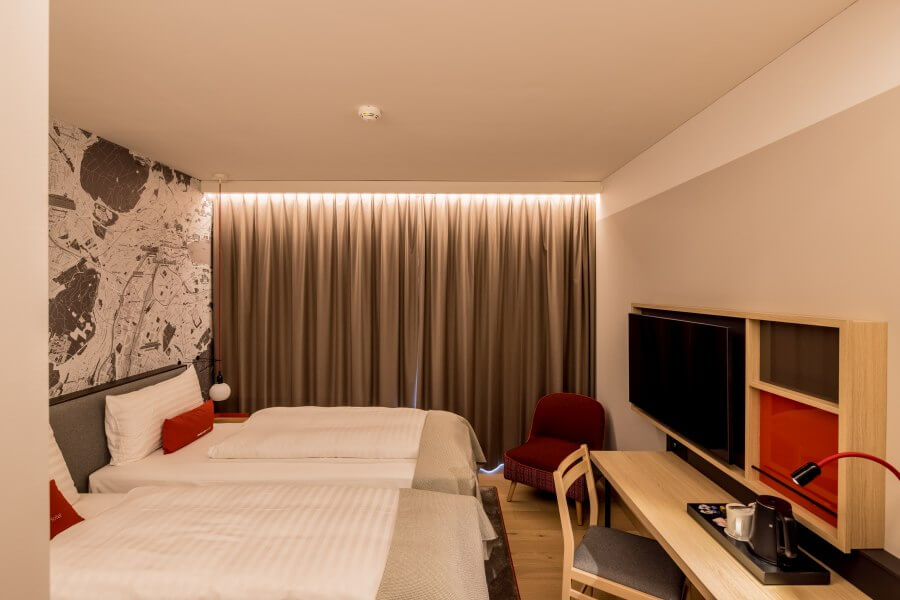 Businesshotel mit 260 Zimmern, einem Restaurant mit Bar, einem 450 m2 Konferenzzentrum, Wellness- und Fitnessbereich und einer Tiefgarage mit 123 Abstellplätzen.