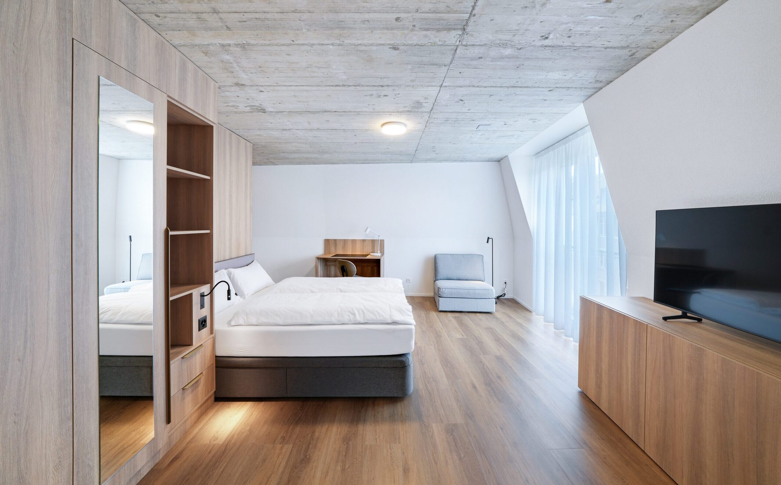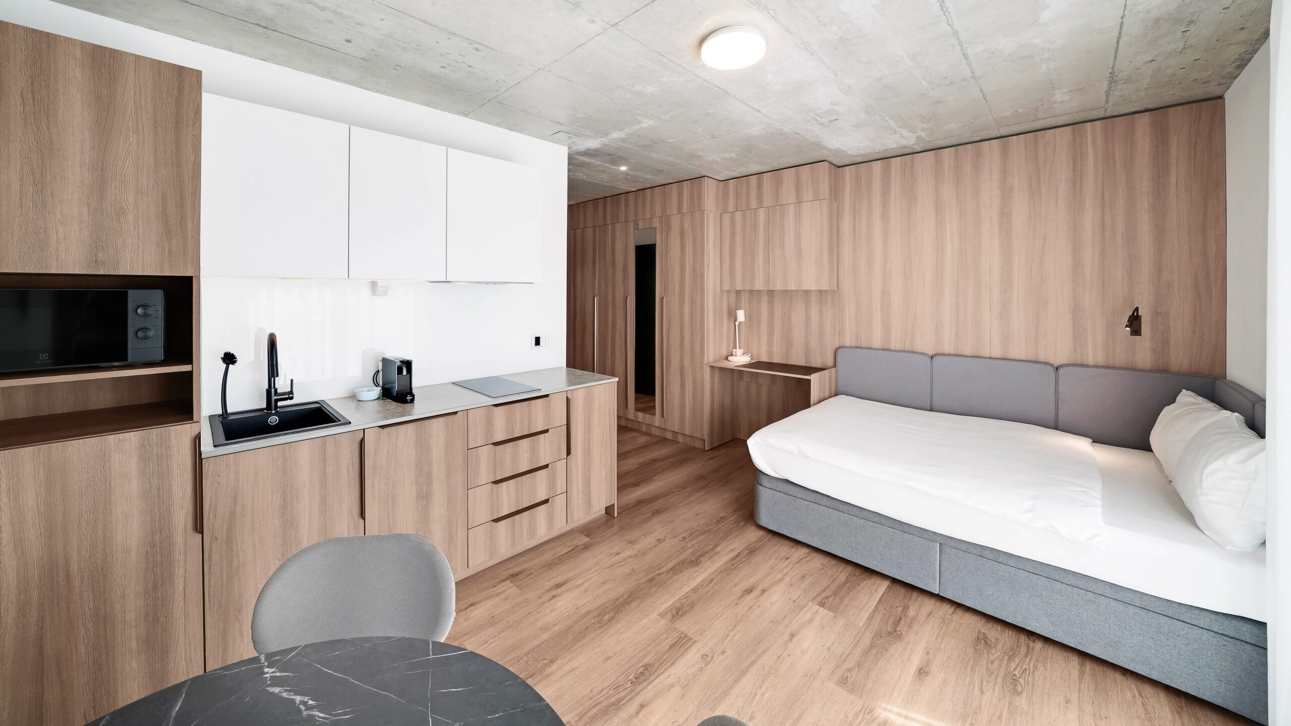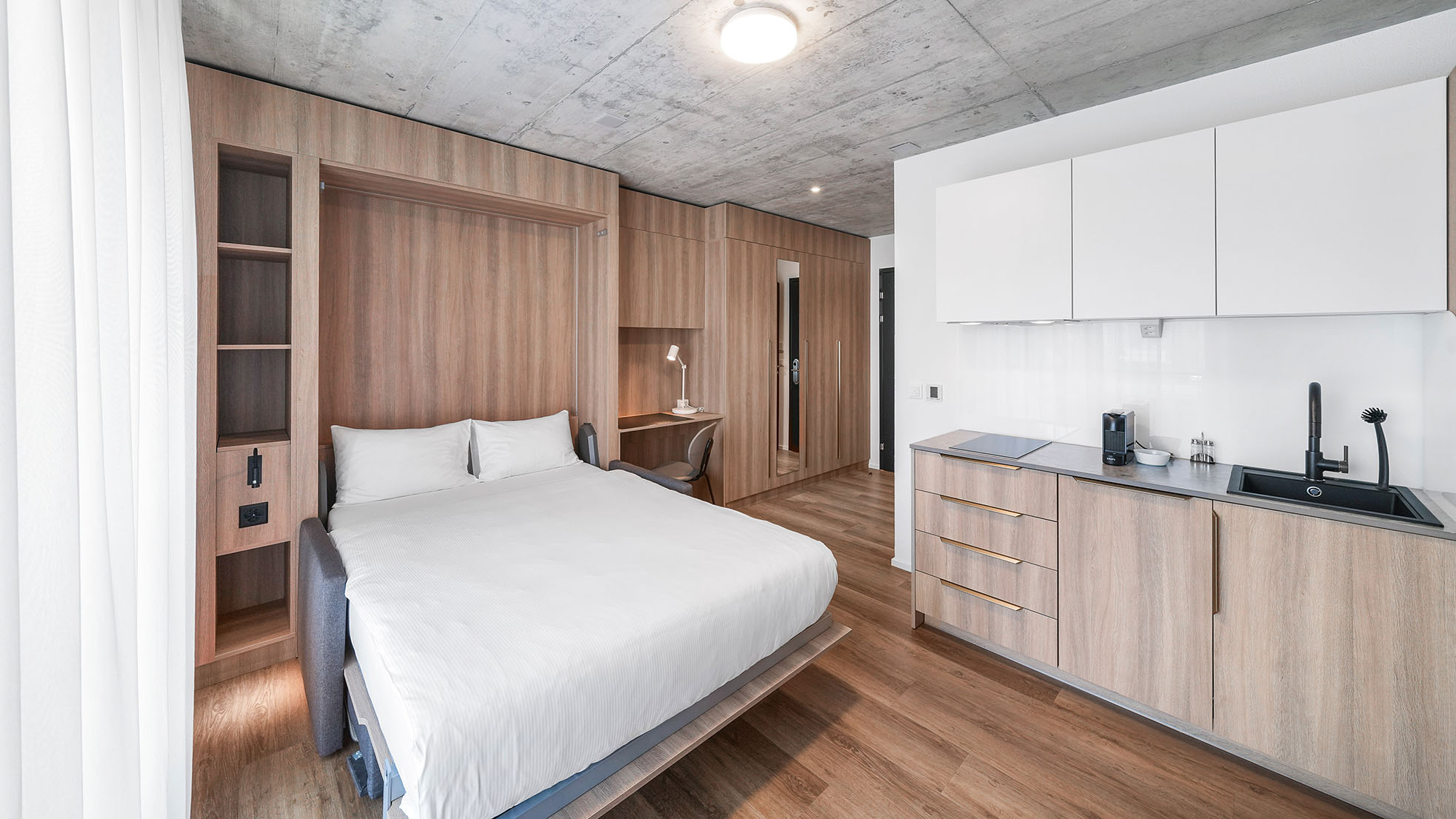 Das Unternehmen MOOI Apartments reagiert auf den gesellschaftlichen Wandel hin zu innovativen und wettbewerbsfähigen Raumkonzepten. Die Firma hat sich auf die Vermietung erstklassig ausgestatteter und möblierter Apartments spezialisiert und verbindet das Bedürfnis nach urbanem Wohnen mit einem stilsicheren Designansatz. Jeder Standort wird gezielt auf die Bedürfnisse des temporären Wohnens geprüft, um massgeschneiderte Wohnkonzepte und -angebote zu entwickeln. Besonderes Augenmerk liegt dabei auf höchster Funktionalität und einem stimmigen Einrichtungs- und Designkonzept. Jedes Apartment ist mit einem eigenen Bad und einer Küchenzeile ausgestattet; Annehmlichkeiten wie die wöchentliche Reinigung, die Bereitstellung von Frottee- und Bettwäsche, ein hausinterner Waschsalon, High-Speed-Internet sowie Smart-TV sind im Preis inbegriffen. Durch die vollständige Digitalisierung des Buchungsprozesses sowie der umfassenden Automatisierung können Gäste bei MOOI rund um die Uhr ein- und auschecken.