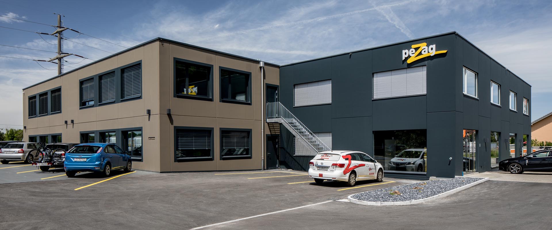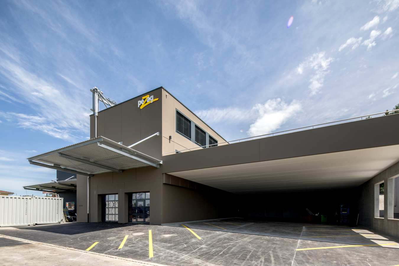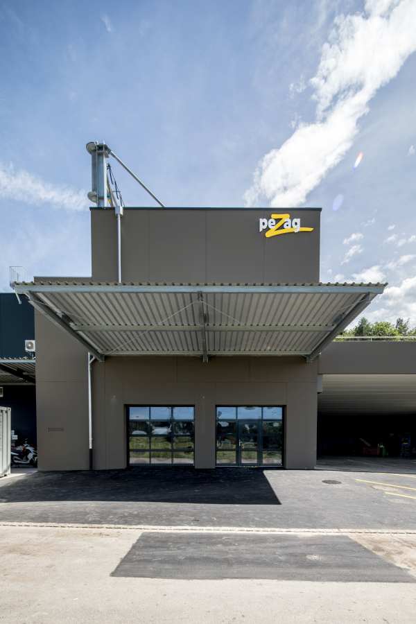 Erweiterungsgebäude mit Lager, Büro und Werkstatt, sowie Parkplatzanbau.