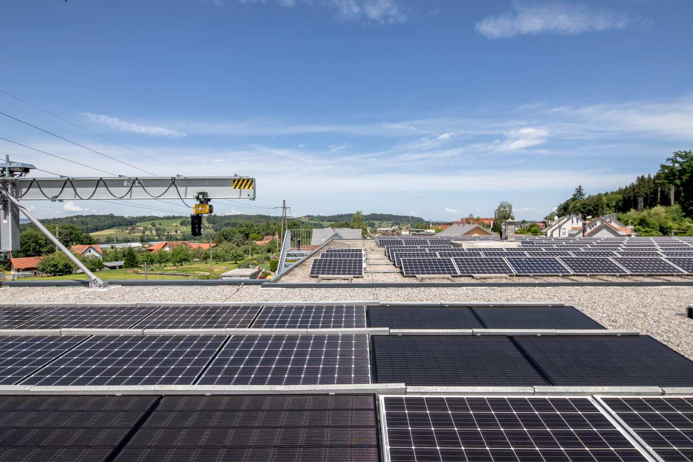 - Innovative Logistiklösung vertikal mit intelligentem Säulenschwenkkran (Handling grosse Elektroverteilerschränke).