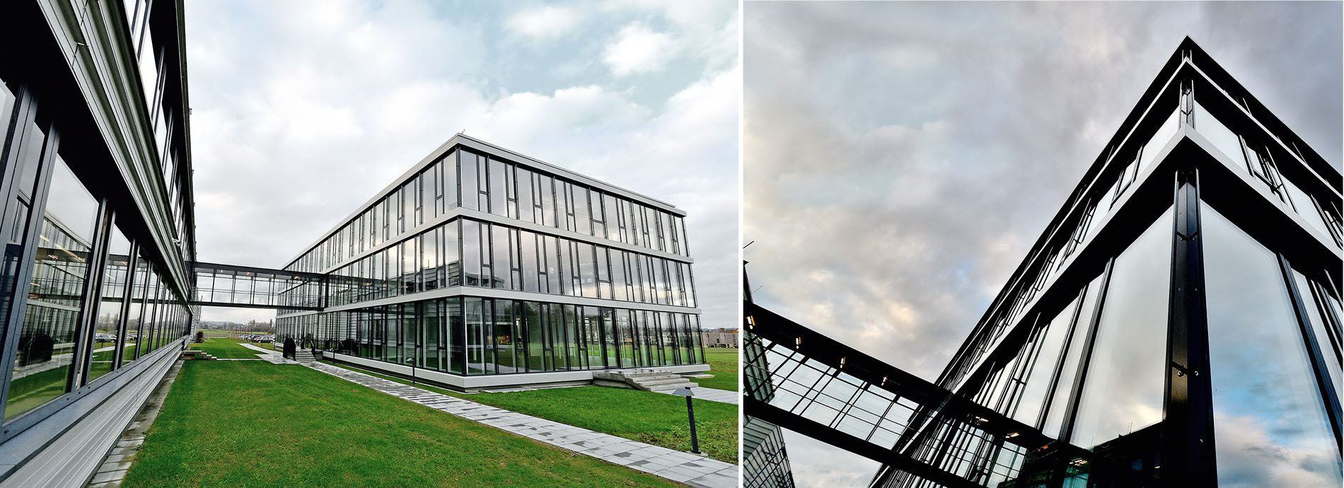 Das neue Verwaltungsgebäude, dessen Aussenhülle aus geschosshohen Verglasungen besteht, fügt sich mit seiner markanten Architektur harmonisch in den Bestand ein. Diese bereits bestehenden Bauten wurden 2004 durch das Architekturbüro Günter Hermann Architekten aus Stuttgart geplant und umgesetzt. Das deutsche Architekturbüro war auch für die Projektierung des Neubaus verantwortlich, jedoch wurde ab erteilter Baubewilligung die gesamte Projektverantwortung für die Ausführung an METHABAU übertragen.