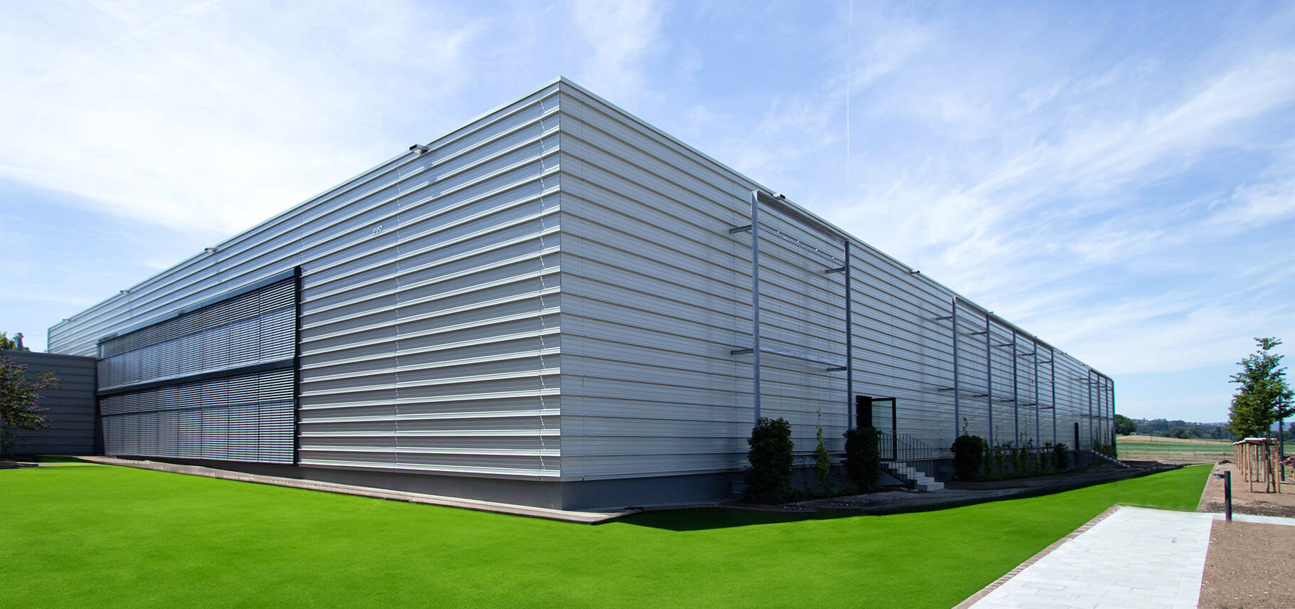 Herausfordernd war auch die Fassade: Diese musste dem Bestand angepasst werden, um ein einheitliches Erscheinungsbild zu erzielen. Die Aussenhülle besteht ausschliesslich aus Glas. METHABAU konnte sich hier nicht nur als kompetenter Baumeister, Stahlbauer oder Elementbauer beweisen, sondern im Speziellen auch als Metall- und Fassadenbauer. So hat METHABAU zu 100% die Fassaden konstruiert, produziert und montiert, sowohl die grossflächige Glasfassade des Verwaltungsgebäudes wie auch die Metallfassade der Lagerhalle.