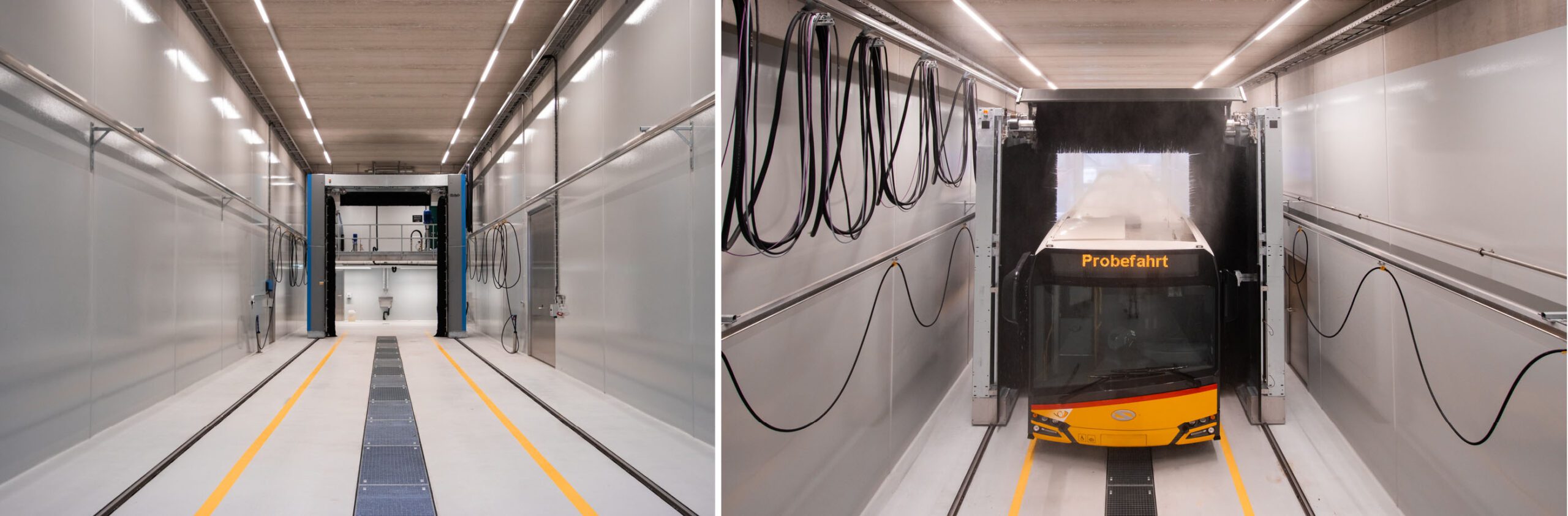 Neubau einer Buseinstellhalle mit Werkstatt und Büroräumlichkeiten. Da die komplette Busflotte in Zukunft elektronisch betrieben werden soll, ist auch die komplette Ladeinfrastruktur Bestandteil dieses Neubauprojektes. Der Kopfbau wurde in Massivbauweise und die Einstellhalle als Stahlbau erstellt.