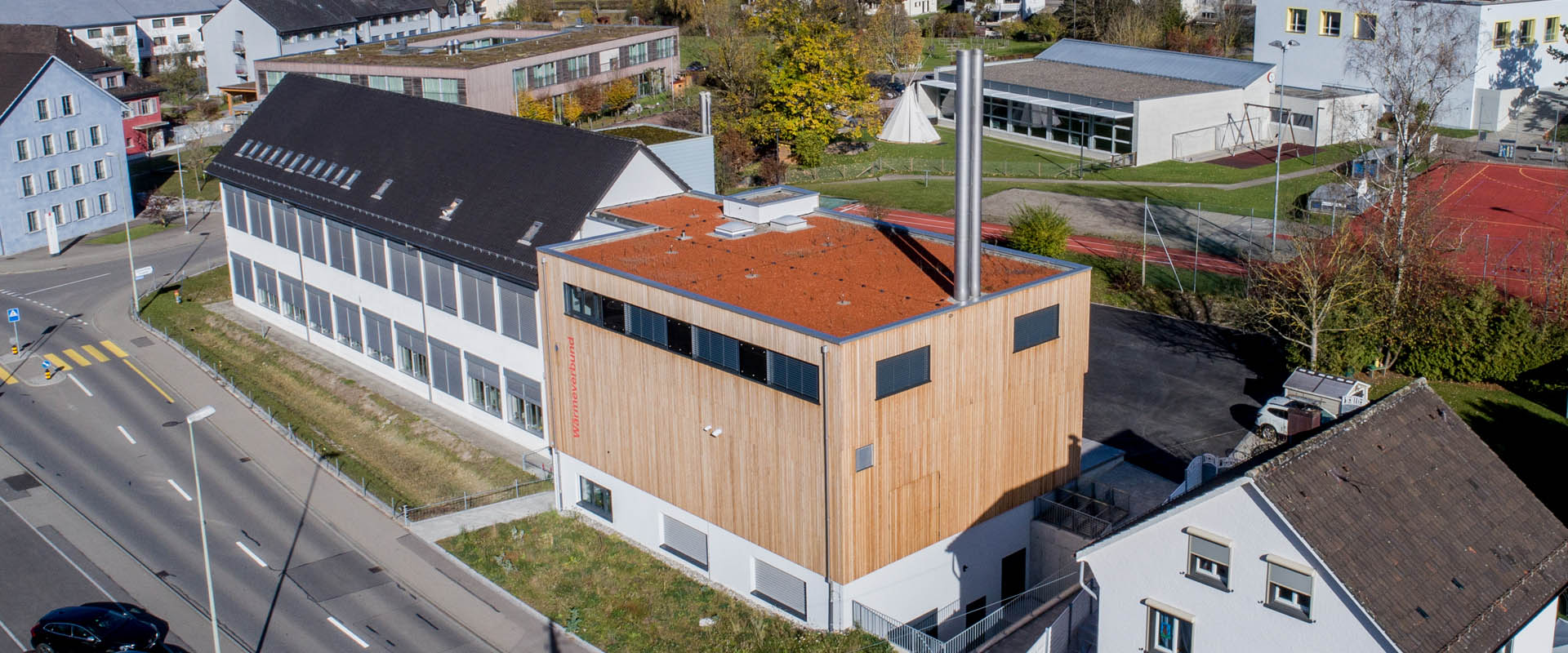Neubau Gewerbehaus mit Schnitzelfeuerung für grossen Wärmeverbund und Werkstatterweiterung