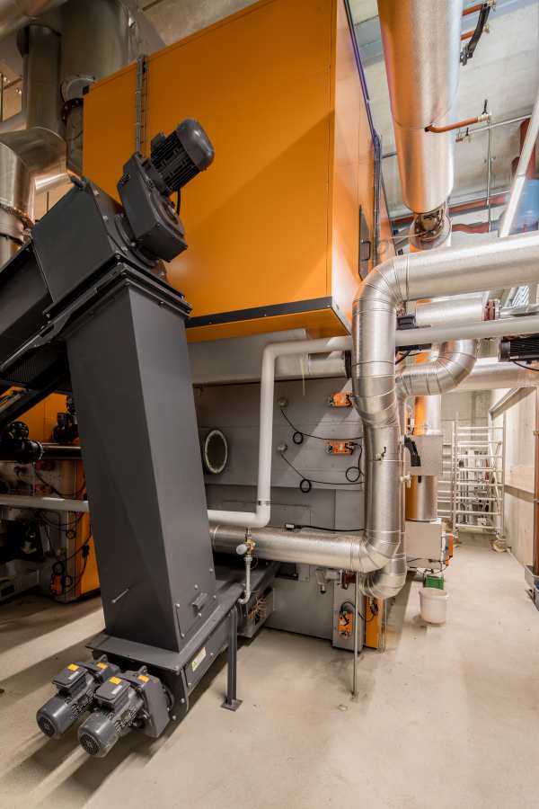 - Gebäude für XXXL-Schnitzelfeuerung, Filterraum und Schubboden-Schnitzel-Lagerkeller