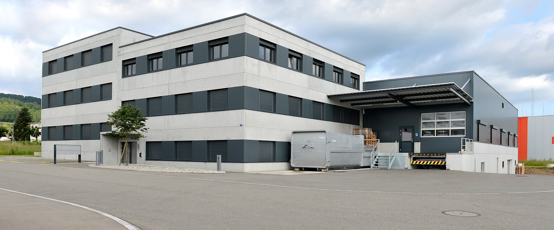 5-geschossiger Bürokopfbau, mit Produktion im 1. OG und PW-Garage in EG