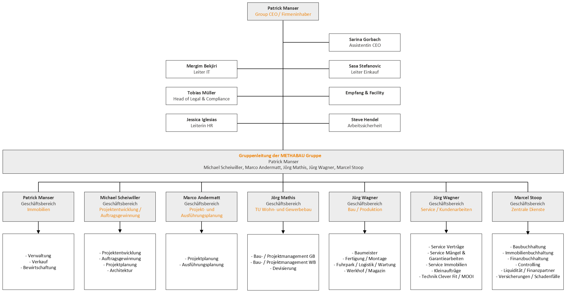 An unseren drei Standorten mit rund 200 Mitarbeitenden und einer sechsköpfigen Gruppenleitung vereint die METHABAU Gruppe alle Fachkompetenzen und Stärken. Die erfahrenen internen Projekt- und Bauleiter von METHABAU betreuen Ihr Projekt von der Idee bis zur Schlüsselübergabe und darüber hinaus. Für die fachgerechte Umsetzung sorgen die hauseigenen Bauteams, unterstützt von unseren langjährigen Partnerfirmen.